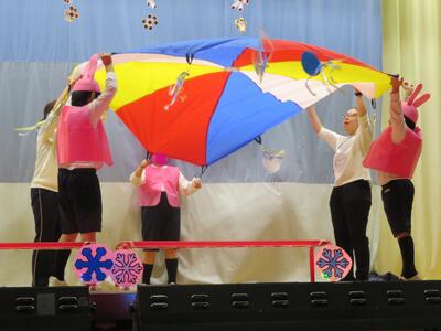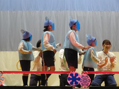平均台や手押し車、手遊びや楽器の演奏を披露してくれましたよ