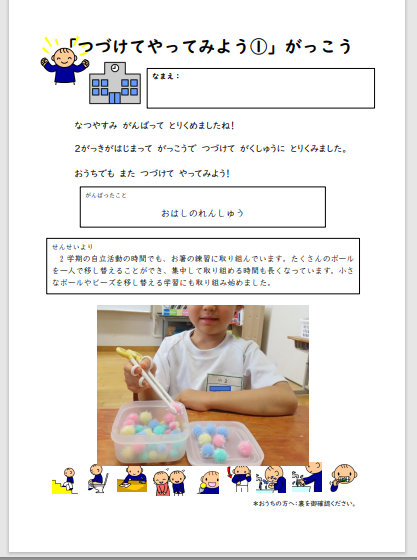 夏休み後の学校で、おはしを使う学習に取り組んでいる様子の紹介ですにっこり