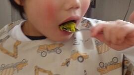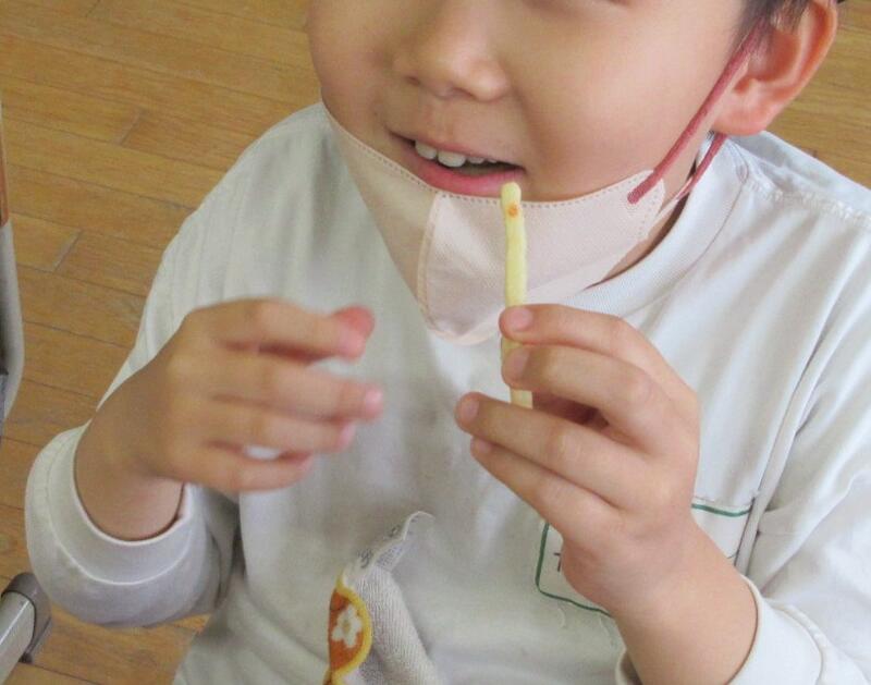 2年生の男の子のように、あえてつかみやすい食べ物ではないもので練習したり、