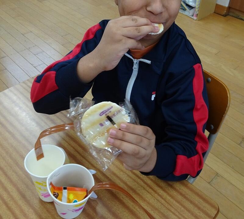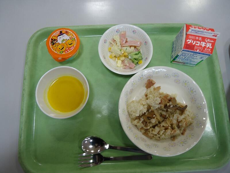 ハロウィンの日は、給食もハロウィンメニューでした笑う