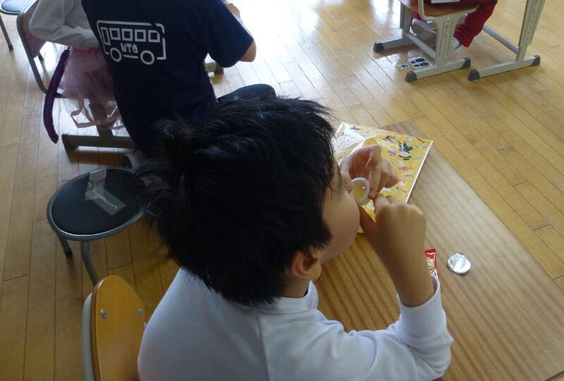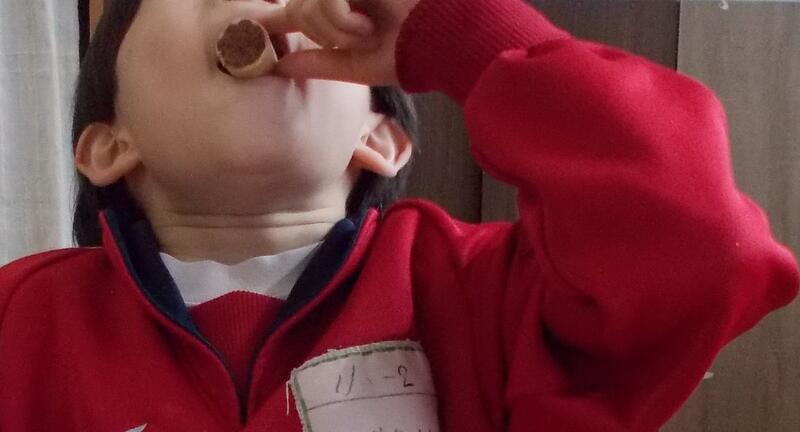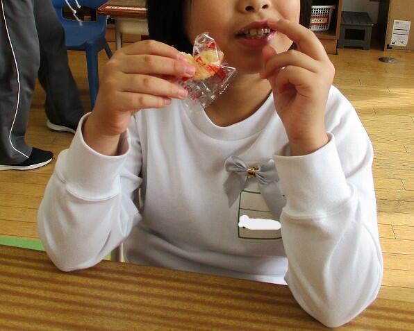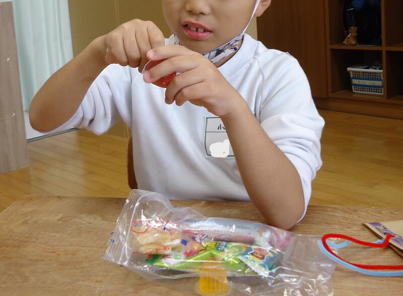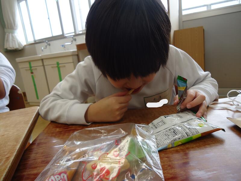 お菓子の袋やゼリーのふたも、がんばって自分で開けますピース