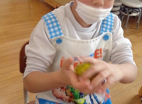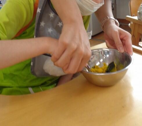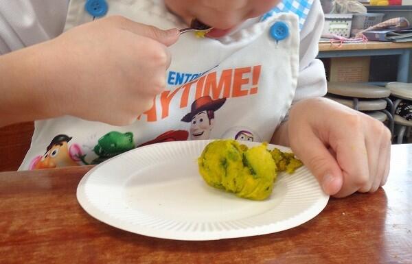 ということで、かぼちゃの茶巾つつみに挑戦していたクラスがありましたよピース興奮・ヤッター!