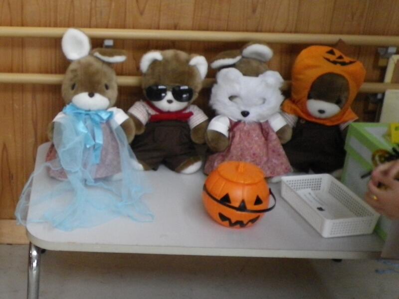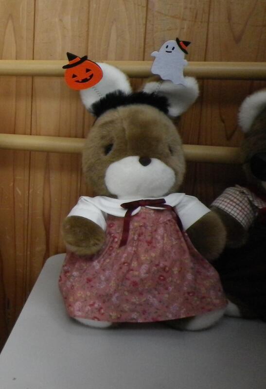 テディベアミュージアム様より寄贈していただいたうさぎちゃんとくまちゃんのぬいぐるみたちも、ハロウィン仕様に