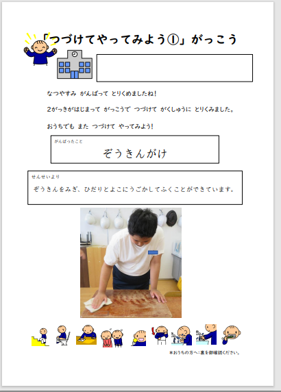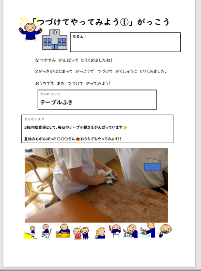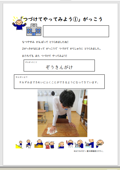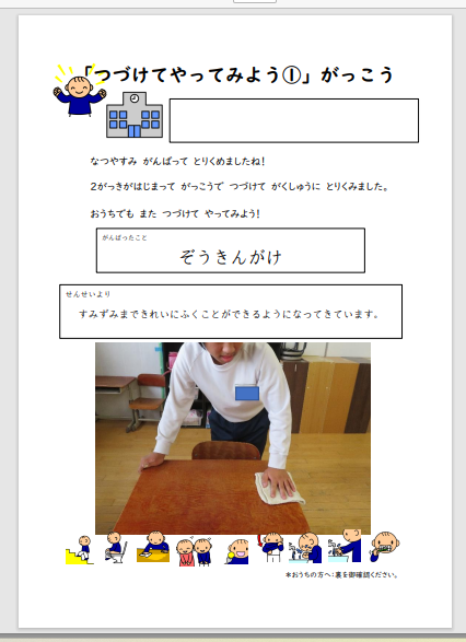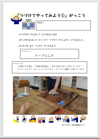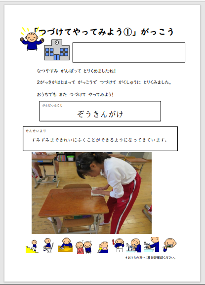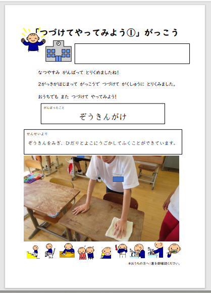 現在、夏休み後の学校での取り組みを家庭にお知らせし、家庭で取り組んでいただいている期間になりますにっこり