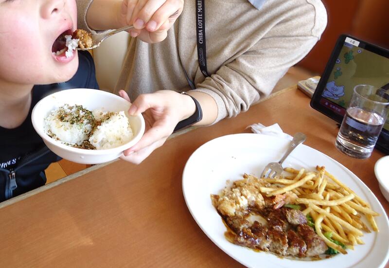 5年生の男の子2人のように、好きな食べ物だけはおはしで食べてみようとチャレンジしたり