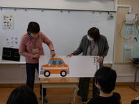 「のっているのはだあれ?」では、乗り物に乗っている動物のシルエットを見て、乗っている動物を当てるクイズ形式で、子ども達は積極的に解答してとても盛り上がりました。