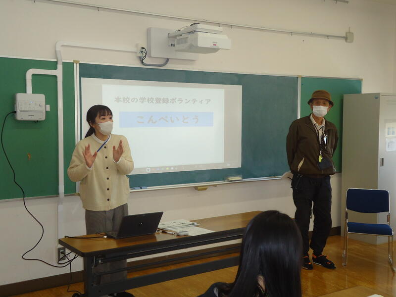 講話「本校のボランティア活動について」では、学校登録ボランティア「こんぺいとう」の会長様から現在の活動内容やボランティアを経験しての感想をお話いただきました。「子どもたちと直接かかわることができ、子どもたちの笑顔や懸命な姿に元気をもらっている」と温かいお言葉に嬉しくなりました。本当にありがとうございます