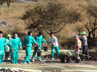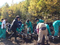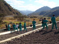 10月30日(木)、1年生がクラスごとに午前と午後に分かれ、足尾町の松木渓谷で、次年度の植樹デーに向けた新しい植樹場所の造成活動を行いました。本格的な冬が来る前に準備を完了しておきたいところですが、NPO法人「足尾に緑を育てる会」のスタッフと「作業デー」ボランティアだけではなかなか人手が足らない現状です。そこで急遽、本校生徒がお手伝いさせていただくことになり、当日は新しい植樹場所に土を運ぶ作業を行いました。生徒にとっては、緑を育てる会のスタッフの方々が何を考えこのような活動に取り組んでいるのかを知る、よいきっかけになったと思います。