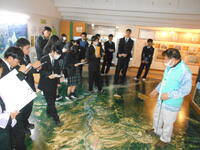 佐々木禎子さんにまつわる折り鶴のモニュメントを見学し、生徒が作成した千羽鶴を納めました。