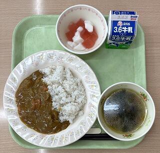 カレーライス 冬瓜スープ 紅白ゼリー 牛乳