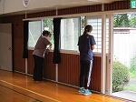 今回は運動会前ということで、体育館内と体育館出入口付近の清掃を行いました。体育館内は窓拭きを中心に行い、出入口付近は、げた箱の清掃などを行い、細かい所まできれいにしていただきました。