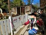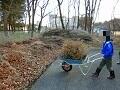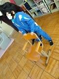 自立活動の時間に竹ぼうき、一輪車などを使い、落ち葉掃きをしました。身体より長いほうきの扱い方を覚えて、苦労しながらも、児童は一生懸命に落ち葉を掃いていきました。