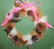 どんぐりやまつぼっくりなど自然の素材を飾りに使いました。