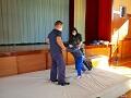 自立活動の時間に、体力の向上、いろいろな動きの獲得などを目標に、サーキット運動に取り組んでいます。ボール壁当て、ラダートレーニング、マット上での動物歩き、ボール投げ、ステージ登りなど様々な活動に、児童は自分のペースで意欲的に楽しく行っています。