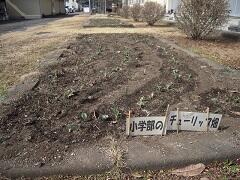 1月下旬に芽が出始め、ここ数日で一気に芽が出てきました!!児童は毎日、登校するとチューリップの成長を観察しています。