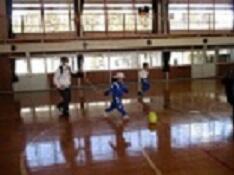 小学部の体育で、サッカーをしています。パス、ドリブル、シュートなどボールの扱い方が難しいですが、みんな、上手くなろうと一生懸命に活動しています。