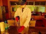 ②ブレンダーでいちごをジュース状にする。