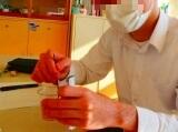 ムースが固まるまで、いちごの飾り切りをしました。