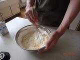 卵を割って、ホットケーキの粉と牛乳を入れて混ぜ合わせ・・・