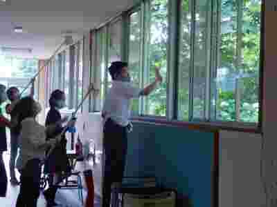 校内の教室の窓拭きを中心に行いました。子供達も普段できない所の清掃に、一生懸命取り組みました。教室が明るくなり、気持ちよく学校生活が送れることと思います。