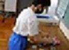 人生ゲームでは、美容師や医師、タレントなどの職業人になって、いろいろな疑似体験をしながら進みます。両替もお手の物。昼休み当番の先生と楽しんでいます。