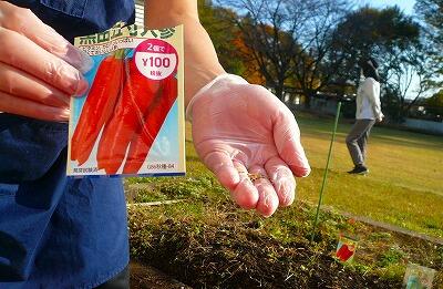 万能ねぎ、かぶ、にんじん、チンゲンサイの種を植えました。