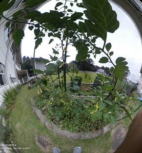 今回は、花壇の野菜とあじさいの様子をVR(バーチャル・リアリティ)で体験しました。