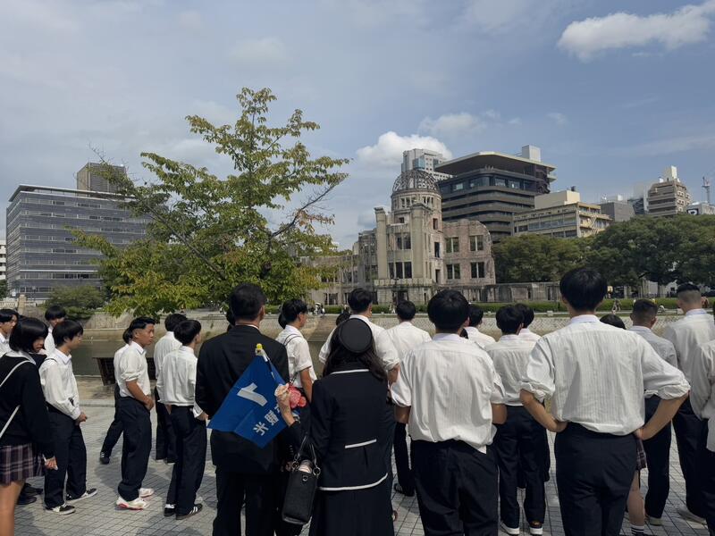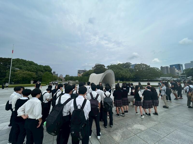 平和記念公園につきました!事前に動画や調べ学習で戦争の悲惨さは学んでいましたが記念公園や資料館で実際の被害にあった場所で肌で感じるものがあったのかいつもとは違った顔で平和学習を行なっていました。普段の日常がどれだけ幸せな事なのか噛み締めてわかってくれていたら嬉しいですね!