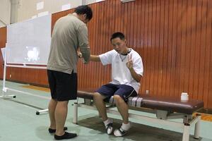 午後の部では、足関節のテーピングの実技試験を行い、講師の先生方に評価していただきました。いつになく真剣な表情で取り組んでいる姿はとても素晴らしかったです