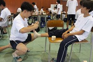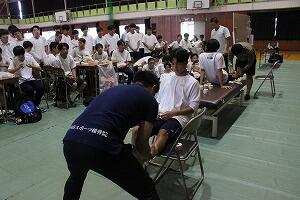 生徒の中には将来、柔道整復師やアスレティックトレーナーを目指す子、スポーツに関する職に就きたいと考えている子も多く、今回の実習で本校OBの方に指導していただいた経験は進路実現を目指す励みになったと思います。