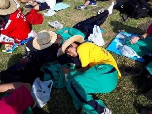 本日最初の大休止。矢板市農村環境改善センターで昼食です。ここではPTA大田原南支部の皆様の支援を受けています。ありがとうございます。