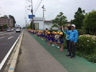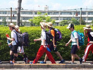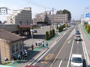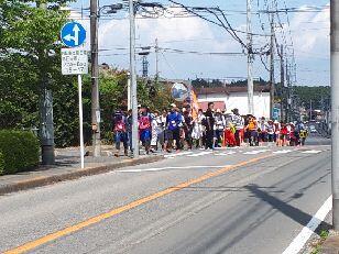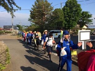 先導歩、時間通りの歩行ご苦労様です。先頭には元気な校長先生の顔が見えます。最後の写真の方も奮闘中。