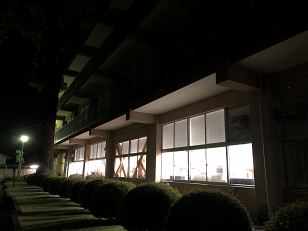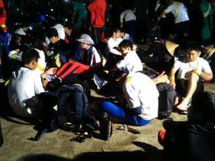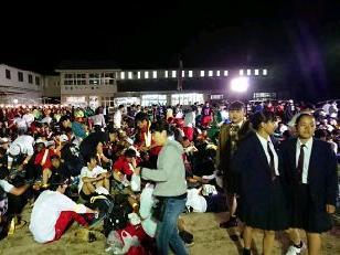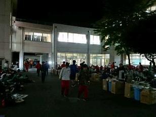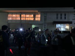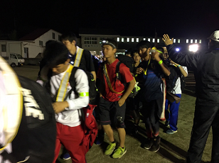日付が変わった0時40分、黒磯北中学校に到着しました。真夜中の時間にも関わらず、PTA黒磯支部の皆様にお世話になるほか、黒磯北中学校の先生方が校舎に明かりを入れて本校生を迎えてくれました。