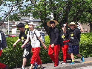 また、ゴールまで11キロ余りを残す中、旧川西中恒例の応援団による大高ストームが行われます。70キロ以上歩いてきた身体で行うのは、かなり厳しいと思いますが、多くの生徒が参加するなか行われました。
