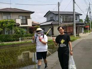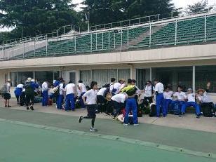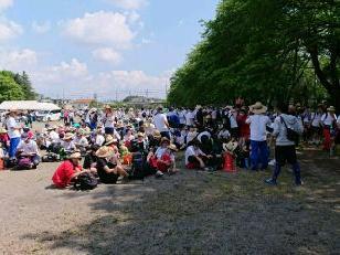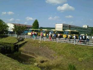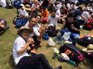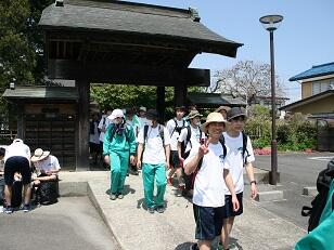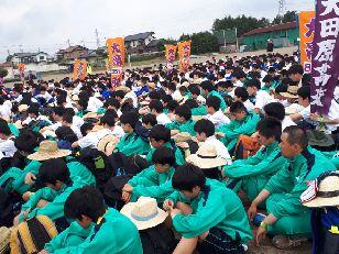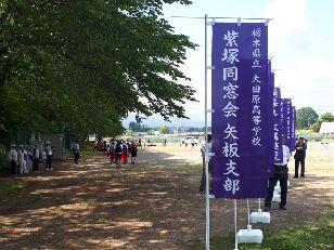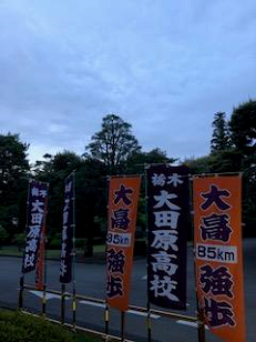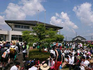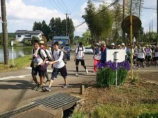 昼食でエネルギーを補給して、無事矢板中学校に到着しました。こちらでも毎年お世話になっています。紫塚同窓会矢板支部の方々が、幟を立てて歓迎してくれました。ありがとうございます。また、こちらから泉中学校、矢板市郷土資料館まではPTA矢板支部の皆様にお世話になります。