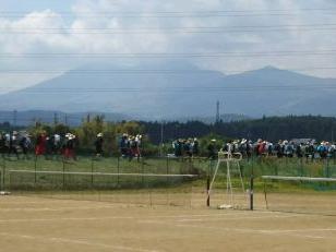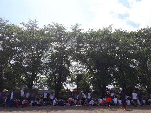 9時45分、花火を合図にスタートしました。お隣の紫塚小学校の1年生、4年生から6年生の児童が応援してくれました。