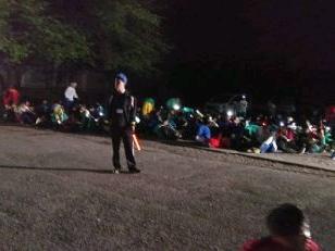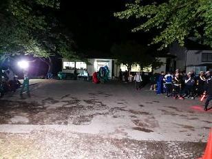 田舎ランド鴫内はPTA大田原西支部の担当です。遅い時間にご苦労様です。ここからは街灯が全くなく、投光器を配備して生徒をサポートします。ここもかつては鴫内小学校でした。