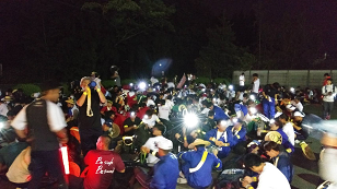 正門にはカメラを持った多数の保護者がゴールの瞬間を待ち構えていました。生徒会長、強歩委員長が感謝の言葉を述べ、胴上げの後大高ストームで歓喜のゴールを迎えました。