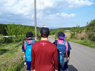 あと35分ほどの歩行で旧川西中学校に到着します。朝食が待っている。