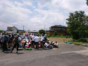 旧金沢小学校到着です。85キロ強歩のコースには、旧金沢小学校のほか、旧戸田小学校、旧川西中学校など、すでに閉校となった学校があります。ここを過ぎると、歩行距離は30キロを超えます。旧金沢小学校では、PTA西那須野支部の皆様にお世話になっています。