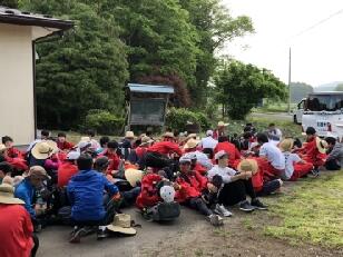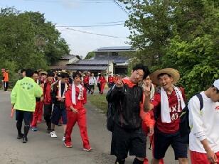 あと35分ほどの歩行で旧川西中学校に到着します。朝食が待っている。