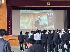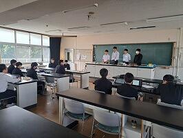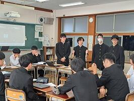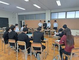 3年生の代表生徒4人により、スライドによる発表、1・2年生による質疑応答、