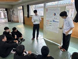 2年生はポスター発表会に向け、作成したポスターをもとに発表練習に取り組みました。
