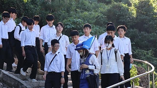 修学旅行2日目の午前中は美ら海水族館を見学しました。あいにく雨の時間帯でしたが、生徒たちは世界最大級の水槽や多様な海の生き物に興味深く目を向けていました。
