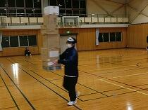 競技①「段ボール運び」重ねた段ボール箱をバトン代わりにしてリレーを行いました。