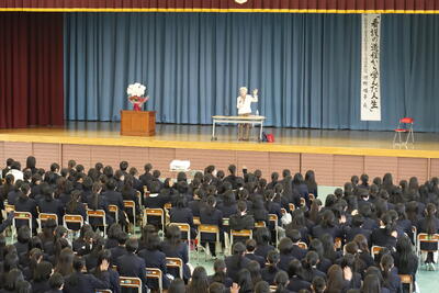 講演では、看護師としてのキャリアや働くことの意義について、具体的な経験を交えたお話をいただきました。質疑応答では、生徒からの質問に丁寧に答えていただき、看護師という職業を超えて、生き方や心の持ち方についても学ぶことができました。