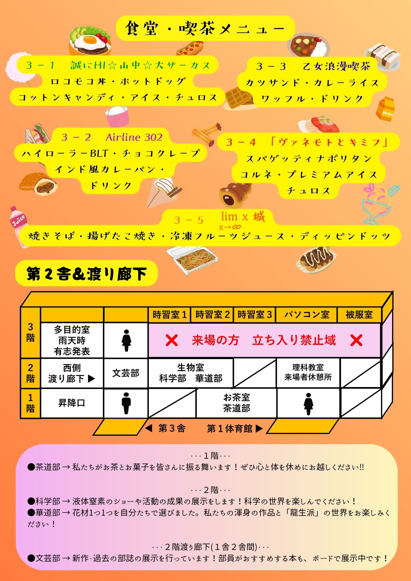 R7文化祭プログラムP6(第2舎・渡り廊下詳細&食堂喫茶メニュー).jpg
