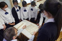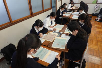 10月10日(金)、15日(水)に1年生の歴史総合の授業で、栃木県立文書館の職員に来校していただき、本物の古文書を利用した授業を行いました。実物の古文書を扱う際の注意を聞いた後、江戸時代(17世紀後期)の古文書に触れ、書かれている内容を判読しました。