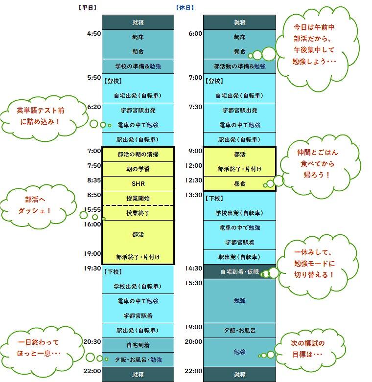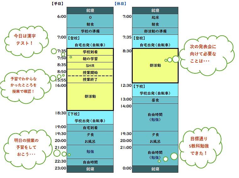 B君は朝早く起きたり、電車で移動する時間などをうまく使ったりして文武両道を実現しています。