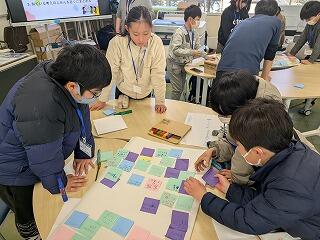 12月24日(火)に小山高校1年生DX探究プログラム(本時)が実施されました。初めに「AIプログラミング」の使い方を学び、AIプログラミング(Teachable Machine)で画像認証プログラムを作成しました。また、「みらいの学校」を開発するための解決策やアイディアをグループで意見を出し合いました。その後、課題を解決するための試作品(プロトタイプ)づくりを行い、作品発表を行いました。